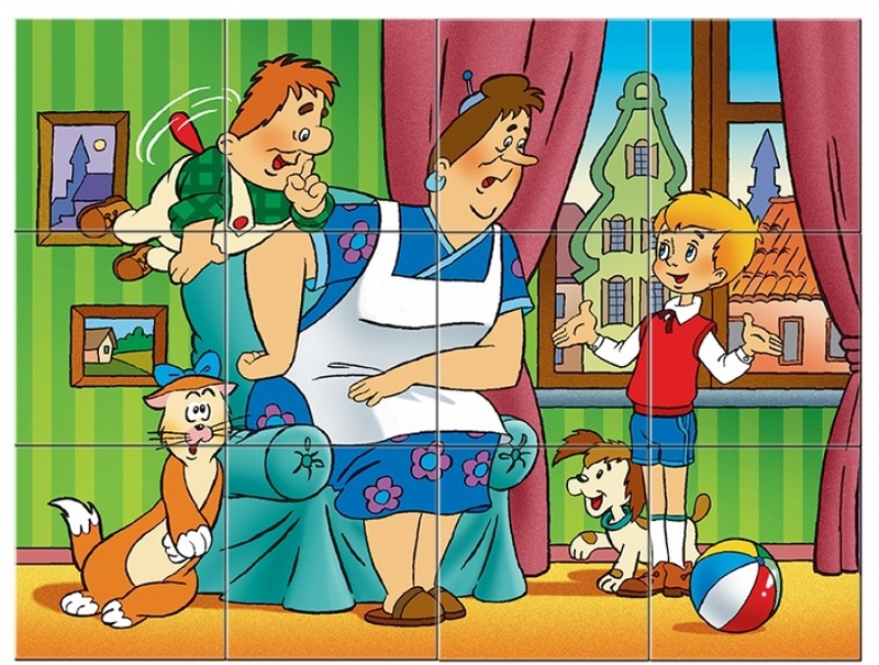 Набор из 12 кубиков Малыш и Карлсон 2 – для тех, кто освоил навык сборки картинки из 9 кубиков.
