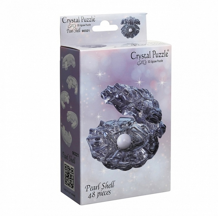 Этот красивый 3D-пазл из 48 деталей скрывает в себе сюрприз – белую жемчужину! Соберите оригинальный пазл из полупрозрачных элементов серого цвета, и вы сможете открывать и закрывать створки, а также прятать внутри раковины свои сокровища. Во всех наборах бренда Crystal puzzle вы найдете инструкцию-подсказку. Попробуйте собрать пазл самостоятельно или воспользуйтесь схемой сборки из инструкции.