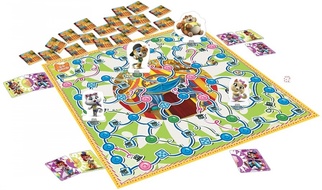 Игроки будут бросать кубик, передвигать свою фишку котёнка на выпавшее число шагов и собирать пары жетонов с изображениями клоунафокусника и его брата-близнеца.