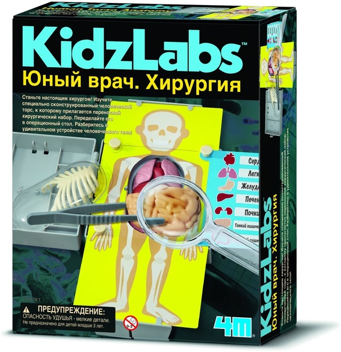 Любой ребенок не прочь примерить на себя белый халат хирурга. Чтобы познакомиться с одной из самых благородных медицинских профессий, разработчики 4М создали замечательный развивающий набор «Юный врач. Хирургия».