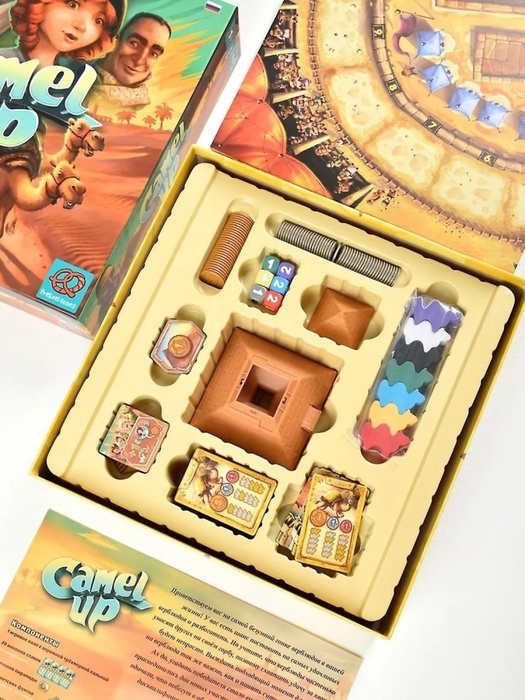 Camel Up — это семейная игра с очень простой сутью: вы делаете ставки на исход скачек, зарабатываете или теряете деньги, а в конце побеждает самый удачливый и богатый игрок. Есть только один нюанс — в скачках участвуют... верблюды, поэтому будьте с ними уважительны и не кричите на них, иначе получите не выигрыш, а только плевок в лицо.