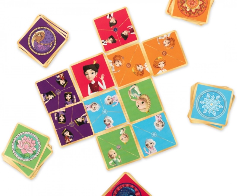 В свой ход возьмите верхнюю карточку из свой стопки, посмотрите и выложите на стол лицом вверх. При этом карточка хотя бы одной из сторон должна касаться уже выложенных карточек. Затем посчитайте отражения царевен по вертикали, горизонтали и диагонали.