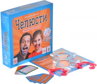 Перед вами проверенный временем настольный хит для вечеринок – Челюсти. Эта весёлая игра теперь адаптирована и для детей – в комплекте, помимо взрослых, вы найдёте также детские капы уменьшенного размера. Правила игры остались неизменными – участникам предстоит объяснять слова и выполнять различные действия. На первый взгляд, ничего сложного, если бы не одно "но" – всё это делать нужно, разместив во рту специальную пластиковую капу, значительно затрудняющую речь и лицевые движения.