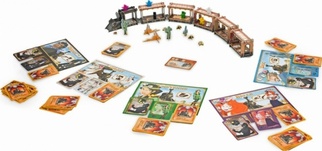Открыв коробку, вы, несомненно, удивитесь, ведь внутри вас ждет самый настоящий локомотив, шесть вагонов и даже фигурки окружающей местности, а еще неповторимые иллюстрации на карточках – от всего увиденного захватывает дух. В целом, оформление игры заслуживает высших похвал. В игре Кольт Экспресс вам предстоит стать одним из грабителей и награбить как можно больше мешков с сокровищами. Вы сможете передвигаться между вагончиками и взбираться на крышу, драться с другими гангстерами, подбирать деньжата и стрелять в соперников. Дополнительного разнообразия придают уникальные способности персонажей. Так Призрак может не раскрывать карты перед соперниками, у Дока в руке помещается целых 7 карт, Туко умеет вести перестрелку с крыши вагона, Красотка – последняя, кого можно избрать для удара, а если стреляет Джанго – его пули откидывают других бандитов в другой вагон. Победит самый ловкий и богатый грабитель.
