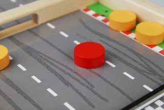 У тебя 5 фишек своего цвета: поставь одну перед резинкой, а оставшиеся по бокам (2 справа и 2 слева). Пусть соперник расставит свои фишки таким же образом.