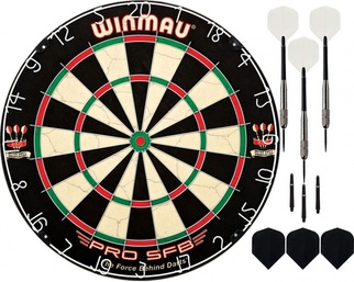 Яркая, контрастная мишень Winmau Pro SFB диаметром 45 см из кенийской сизали, набор дротиков из 3 шт. Winmau NR-4204 Nickel Silver, изготовленных из латуни с покрытием никелем, весом - 24 гр. позволят начинвющим игрокам не только постичь азы игры в дартс, но и усовершенствовать свои навыки до высокого уровня мастерства