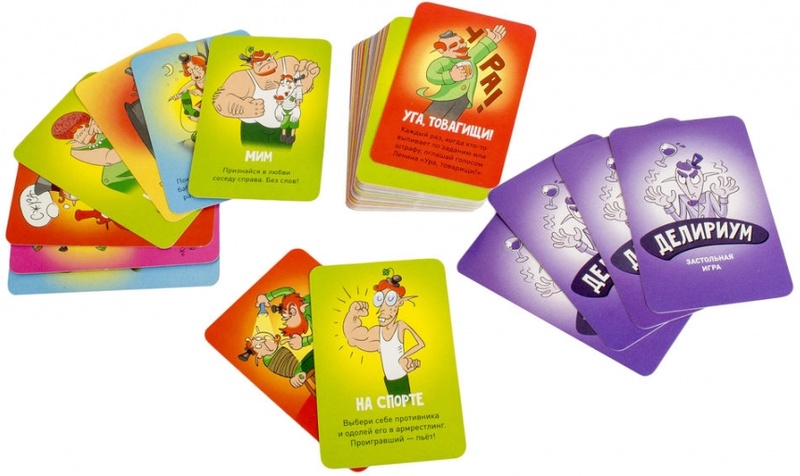 Перед вашими глазами находится едва ли не святая реликвия. Вы имеете честь лицезреть, или что там еще делают с реликвиями, «Делириум» — лучшее средство превратить скучную и обыденную вечеринку с битой посудой и охотой на цыганского ручного медведя в веселейшее занятие.«Делириум» – это настольно–застольная игра, правила которой просты, несмотря на чертовски мудреное название, напоминающее о женщинах и мужчинах в белых халатах. Если вы хотите не просто выпить с друзьями, или с какими–то незнакомцами – это уж у кого как получается, а всерьез повеселиться, то «Делириум» придется как нельзя кстати.