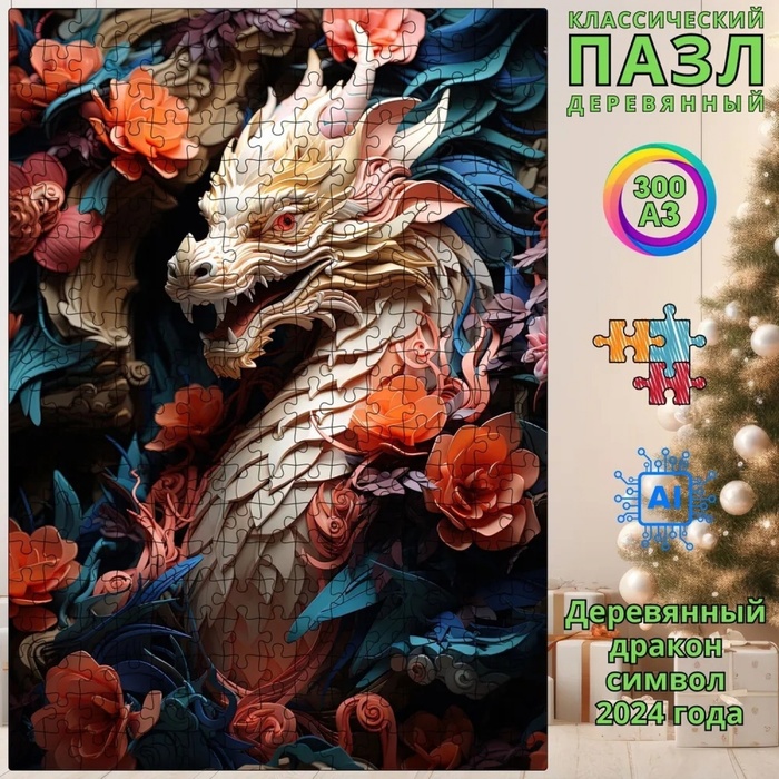 Описание настольной игры Деревянный пазл Kroaton Дракон 300 деталей