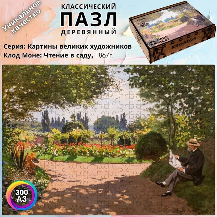Описание настольной игры Деревянный пазл Kroaton Клод Моне Чтение в саду 300 деталей
