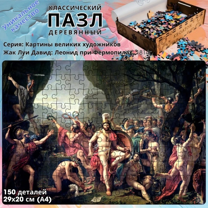 Описание настольной игры Деревянный пазл Kroaton Жак Луи Давид Леонид при Фермопилах 150 деталей