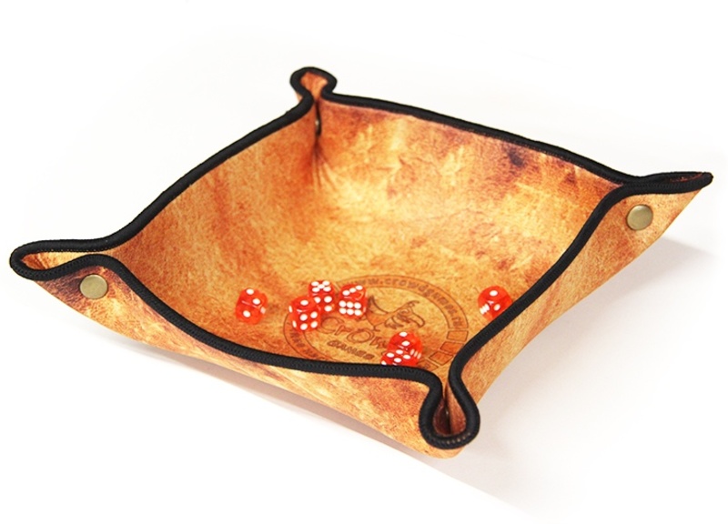 Дайс-трей сделан из ф-неопрена с металлическими кнопками по углам. Складывается за несколько секунд и обеспечивает тишину при броске кубиков.