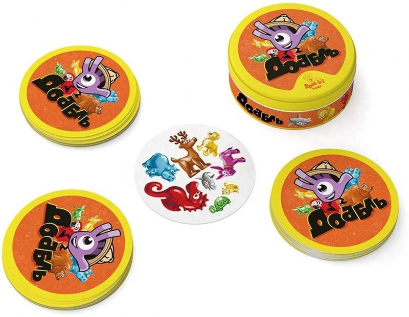 Доббль. Животные - динамичная и весёлая с милыми иллюстрациями зверушек станет отличным подарком для детей! Эта игра не только поднимет настроение, но и незаметно потренирует концентрацию внимания, которое так необходимо в школе. Научит детей навыкам вежливого взаимодействия за игровым столом.