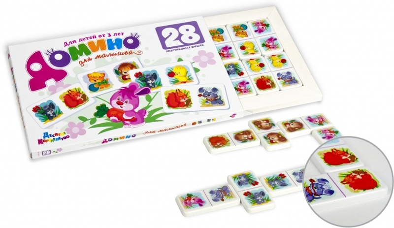 Именно так их и нарисовал художник А. Копырин, а мы нанесли эти изображения на крупные пластиковые фишки. Нанесли термопереносом, без использования красок и лаков. Без запаха, изображение яркое, не истирается. У фишек закругленные травмобезопасные края, при этом они не тяжелые. Именно такое домино идеально подходит малышам.
