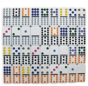 В этом наборе 91 кость из высококачественного пластика, на кости нанесены разноцветные точки. В игре могут участвовать от 2 до 8 игроков