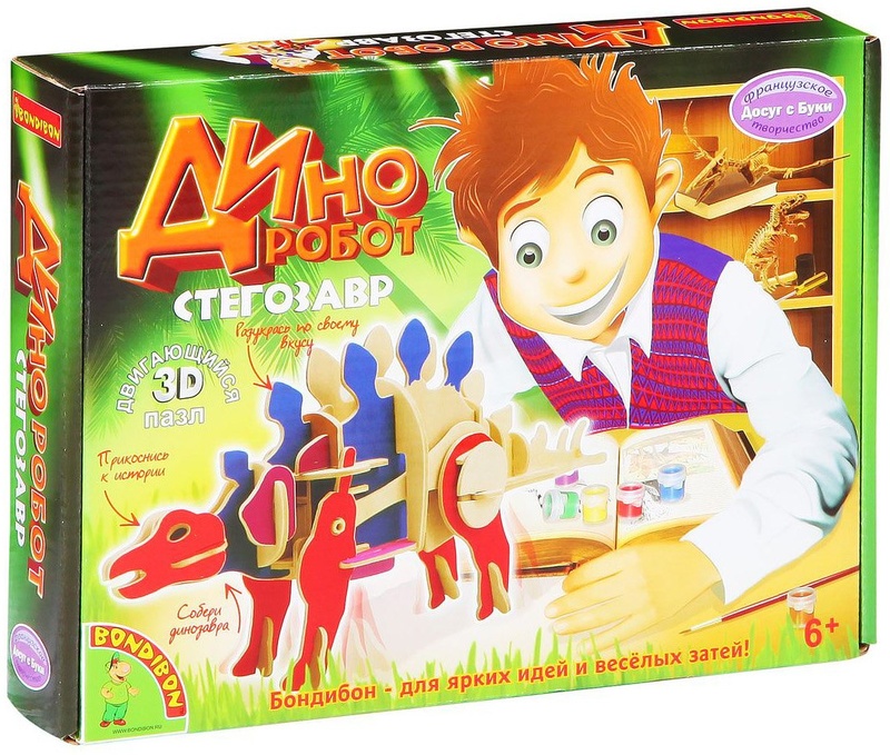 Теперь у него появилась такая возможность: в деревянном конструкторе есть все необходимые детали, чтобы самостоятельно собрать и раскрасить эту удивительную рептилию. А с помощью небольшого моторчика можно даже «оживить» стегозавра и понаблюдать, как он двигается.