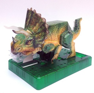 Собранная из картона фигурка буквально оживёт, как только вы подключите её к электронной цепи. Конструктор «Трицератопс» состоит из картонных деталей, с помощью которых можно соорудить трёхмерную модель, не используя при этом клей и скотч!