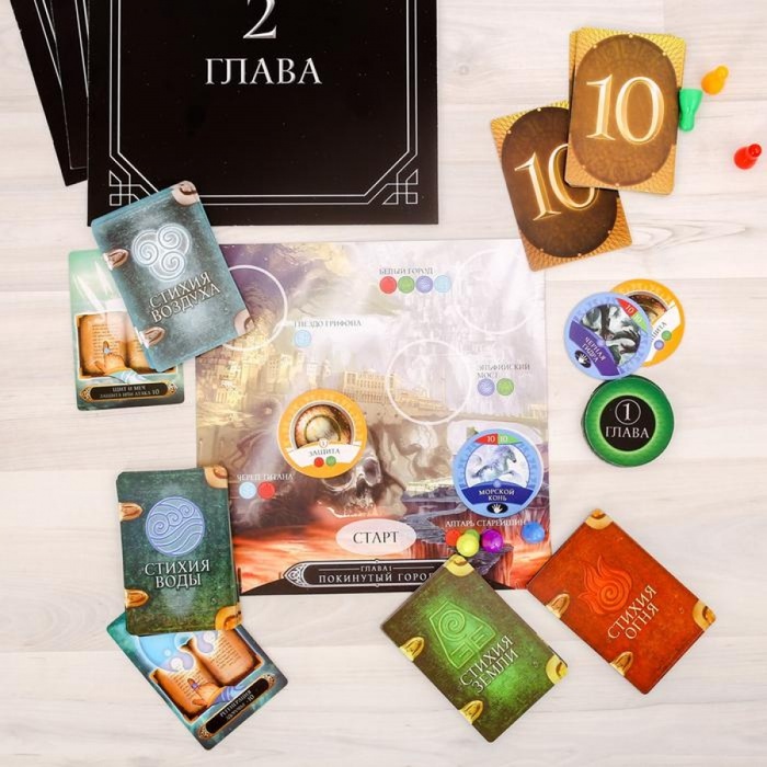 Далее игрокам предстоит перемещать фишки, сражаться с необычными животными, использовать карты стихий и не только!