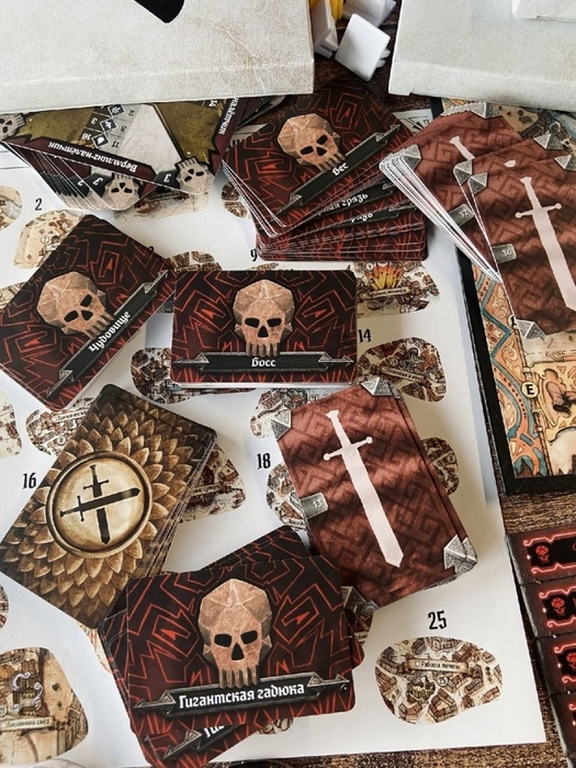 Как и большой Gloomhaven, "Челюсти льва" – это приключенческая стратегия, в которой игрокам предстоит отыгрывать роль наёмного отряда и проходить подземелья, находя наиболее выигрышную боевую тактику против каждого из соперников. В основе боевого процесса – игровые карты, на которых будет содержаться информация не только о вашем снаряжении и способностях, но и о удачности каждого из предпринятых действий: модификаторы в колоде полностью заменят собой стандартную механику с бросками кубиков, что позволит игрокам минимизировать влияние рандома. Кроме того, выполняя действия, вы будете комбинировать способности с разных карточек, что добавляет в игру огромное количество возможных комбинаций.