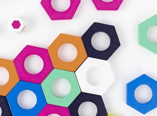 Затем переместите их, чтобы попытаться соединить набор из трех или более одинаковых шестиугольников, чтобы выиграть. Кто найдет формулу победы и соберет больше кусочков, чтобы одержать победу? Головоломка сделана из дерева.