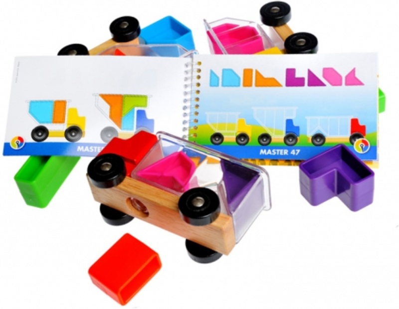 В игре 48 увлекательных заданий четырёх уровней сложности. Простые задания позволят вашему малышу легко освоить принцип игры и с умом подойти к более сложным уровням. Не все дети сразу будут использовать задания — это нормально. Пускай сначала просто повозится с машинками, просто их покатает. Со временем ребёнок обязательно обратит внимание, что цветные детали по разному ложатся в кузов каждого грузовичка и тогда пригодится книжка с заданиями.