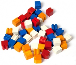 В игре множество разноцветных деревянных фигурок – караваны, торговые пути, купцы и представительства. Кроме того – новая фигурка разбойника!