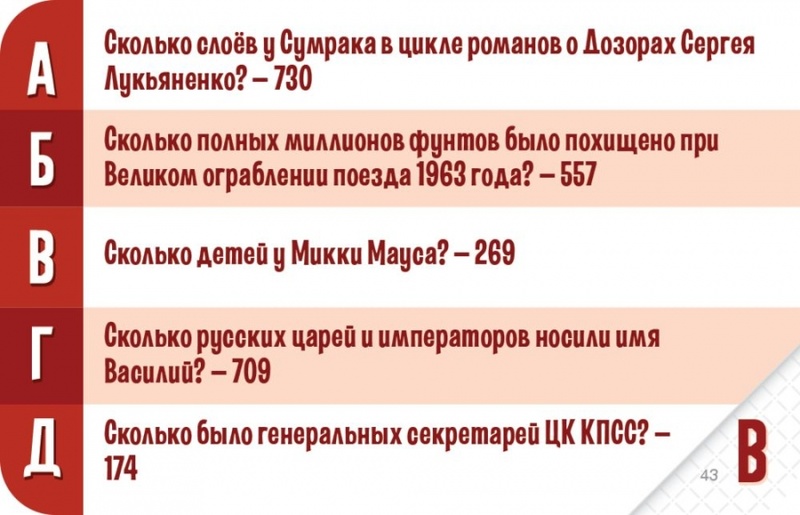 Сколько персонажей в мультфильме "38 попугаев"? Сколько видов хромосом в геноме человека? Сколько медведей изображено на картине Шишкина "Утро в сосновом лесу"? Сколько сроков провёл на посту президента США Франклин Рузвельт? На эти и другие вопросы в настольной игре "Ноль семь" можно ответить числом от ноля до семи.
