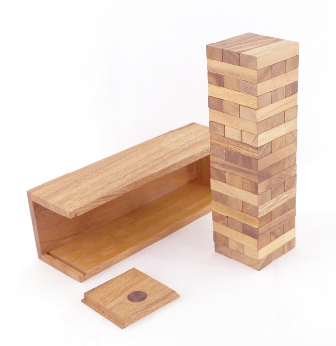 В знаменитой игре Дженга, изначально выстраивается ровная башня, составленная из плотных деревянных брусков. На каждом уровне направление укладки брусков меняется.