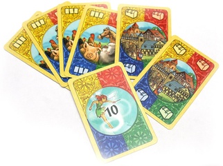 Не опечатка? Карткассон? Именно так! В настольной игре «Карткассон» от 2 до 5 игроков по очереди выкладывают карты средневекового королевства в специальные разноцветные ряды – монастырский ряд (жёлтый),  дорожный ряд (красный), полевой ряд (зелёный) и городской ряд (синий). Среди карт есть карты скота и обитателей, построек, а также джокеры: драконы и феи, скотные дворы и площади. Сами же они могут относиться к четырём различным территориям: синие карты города, красные карты дорог, зелёные карты полей и жёлтые карты монастырей. В свой ход игрок должен совершить одно из двух действий: либо выложить карту, причём свою первую карту в раунде игроки выкладывают лицом вниз, либо выставить подданного в конец любого ряда, с помощью которого и происходит захват карт. Будьте внимательны – цвет вашего мипла и цвета рядов с картами никак не связаны!