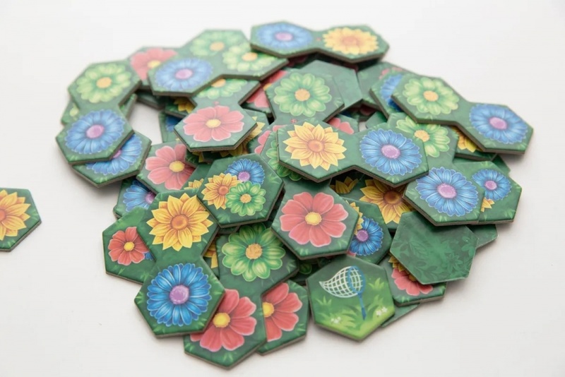 Каждый игрок собирает свое поле из двойных тайлов цветов и на поляны одного цвета рассаживает бабочек. Интрига в том, что бабочку можно посадить только на пустую поляну, поэтому нужно создавать отдельные поляны с бабочками и затем объединять их. Ведь в конце игры для каждой поляны одного цвета число цветов умножается на число бабочек.