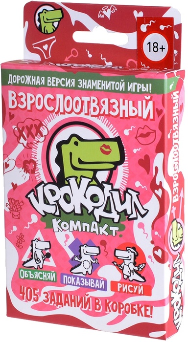 Настольная игра Крокодил ВзрослоОтвязный – весёлая, шумная и общительная игра для любой компании. Задания всех тематических наборов компактного крокодила не только играются по единым правилам. Все наборы совместимы между собой: вы можете свободно смешивать карточки с заданиями (в том числе и с большим набором «Крокодил. Большая вечеринка»).