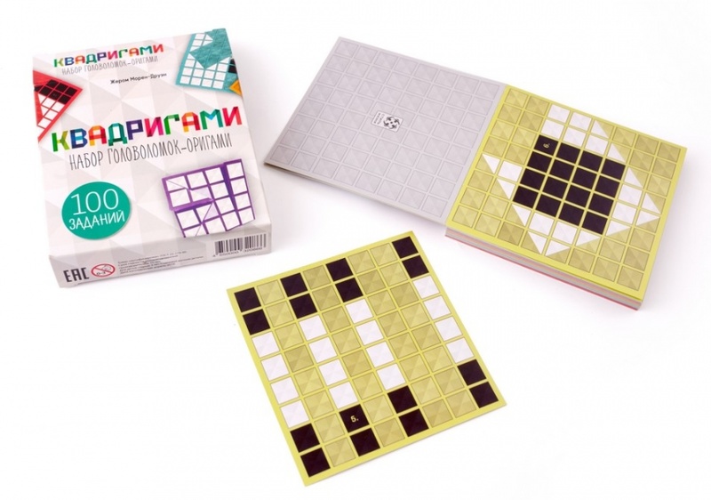 Настольная игра Квадригами – это оригинальное сочетание Кубика Рубика и японских оригами. У вас обязательно всё получится, главное правильно подобрать начальный уровень сложности – всего их 5. Хорошая тренировка логического и пространственного мышления, которая подходит для игрока с 7 лет.