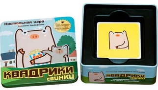 Быстрая весёлая игра! В одной квадратной стране, в одном квадратном городе жили квадратные свинки, которые ели исключительно квадратный попкорн :) Нужно собирать наборы карт, в которых свинки будут максимально похожи друг на друга, то есть отличаться всего одним признаком (цвет, размер, одна/две ручки, в очках/без очков, с попкорном/без него) - и делать это быстрее других.