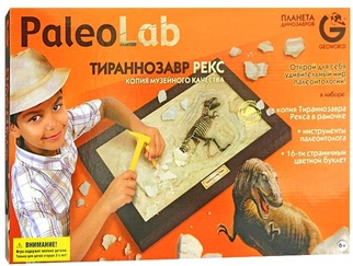 Набор Лаборатория палеонтолога привлечет внимание вашего ребенка и не позволит ему скучать. Набор состоит из буклета, молотка, стамески, и гипсовой плитки с точной копией скелета Тираннозавра Рекса в рамке, который с помощью пластиковых инструментов нужно извлечь из гипсовой формы. После того, как скелет будет найден, его нужно почистить, приклеить табличку и, подписав своим именем, украсить комнату.