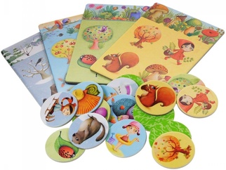 Это классическое лото, специально адаптированное для малышей. Игрокам необходимо как можно быстрее закрыть изображения на таблицах соответствующими фишками.