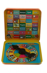 В состав набора входят игровой волчок и магниты с буквами. На каждом магните изображен предмет, начинающийся на эту букву. Таким образом, у малыша создастся прочная ассоциативная связь, которая ляжет в основу нового навыка.