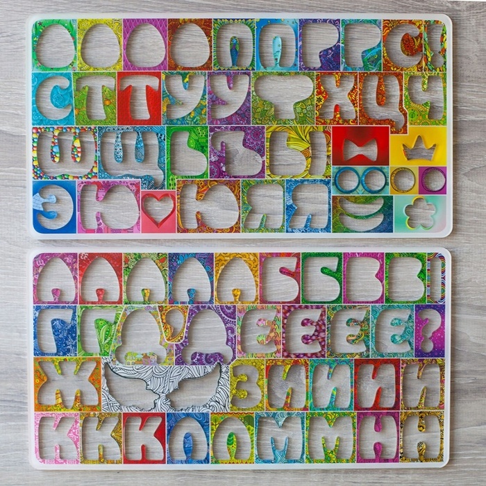 Сортер-трафарет сделан из оргстекла, из которого вырезались буквы. Как конструктор для детишек, подарит вам 40 минут тишины, а вашему ребенку - задачу на развитие моторики, координации, творческого и пространственного мышления.