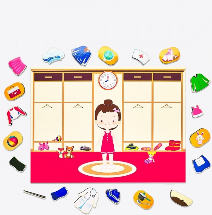 Магнитная одевашка от ГеоПазл - это несложная и очень увлекательная игра, которая прекрасно подойдет для деток от трех лет. Задача ребенка - выбрать одежду, обувь и аксессуары, соответствующие той или иной профессии. А можно немного побаловаться, включить фантазию и создать новые образы из имеющихся деталей.