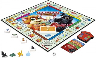 Монополия Джуниор является вариацией классической Монополии, но адаптированной для дошколят. Героями здесь выступают собачки, динозаврики, пингвинчики и утята, а приобретаемое имущество - это такие места, которые однозначно понравятся вашему ребенку, например, кафе-мороженое, магазин игрушек или аквапарк. При этом игровые банкноты заменены банковскими картами, что делает игру более соответствующей современным реалиям, а соответственно, более актуальной для детей.