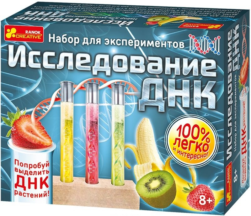 В ходе несложных и безопасных опытов ребята узнают, как разделить ткани растений на клетки и выделить их низ ДНК и что такое генетическая экспертиза. Это отличное развлечение с обучающими элементами для детей старше 8 лет.