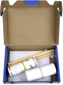Для изготовления Крафт-ТВ удалите середину коробки и заглушки. Здесь будет экран и держатели. Прикрепите края «киноленты» к деревянным палочкам с помощью двухстороннего скотча. Накрутите «киноленту» на левую палочку, оставляя развёрнутым первый кадр. Вставьте палочки в специальные отверстия и закройте коробку. Крафт-ТВ готово! Соберите всю семью и устройте премьеру!