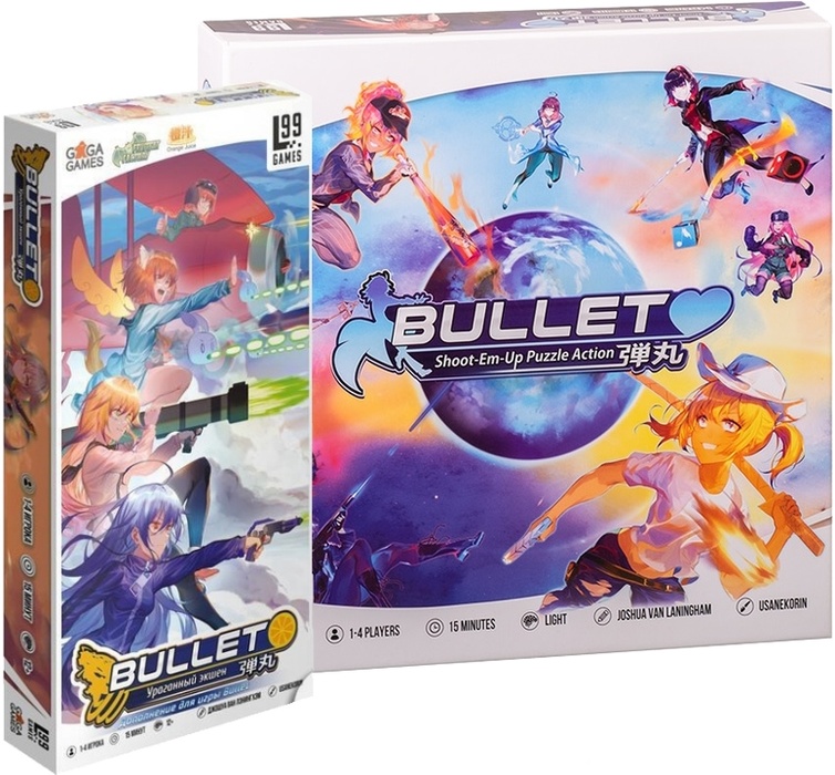 Bullet — динамичная экшен-стратегия в режиме реального времени, вдохновленная аниме-сериалами и видеоиграми в жанре shoot’em’up, bullet hell, пазл и тетрис. Вы готовы к жаркой перестрелке? Тогда включайте таймер — посмотрим, кто сможет продержаться дольше всех под шквалом разноцветных пуль! Это еще одна яркая коробочка от студии Level99, специализирующейся на эпичных файтингах, знакомой многим настольщикам по игре Нуар и серии карточных дуэлей Пиксель Тактикс.