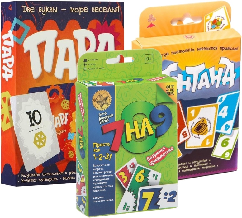 Монтана, Пара и 7 на 9 — это карточные игры на реакцию и находчивость. Фишка этого набора в том, что он запросто поместится в карман или в сумку. А когда расчехлите в гостях или на вечеринке — отлично развлечёт всех собравшихся.