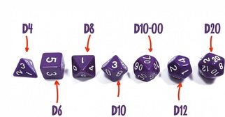 Набор состоит из 7 кубиков - D4, D6, D8, D10, D10%, D12, D20. Размер кубика 16 мм.