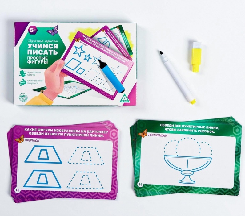Готовим руку к письму. С набором обучающих карточек ребёнок подготовит руку к письму и познакомиться с основными геометрическими фигурами.