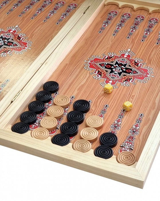 Игровая доска состоит из 2 деревянных створок, скреплённых между собой металлическими петлями. Она прочная, долговечная и на ней не появляются деформации даже при активной эксплуатации. Комплектные фишки и кости помогут сразу начать партию, как только изделие будет куплено.