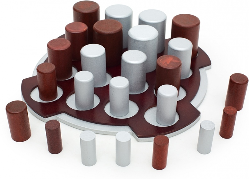 Гобблет - это абстрактная дуэльная игра. У обоих игроков имеется по двенадцать фигур разных размеров, которые нужно складывать в ряд, столбец или по диагонали из четырех штук.