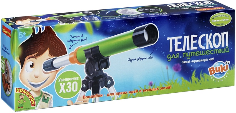 Если Вашего ребенка беспокоят вопросы космического масштаба, без телескопа просто не обойтись! Он способен увеличивать предметы в 30 раз, так что малыш легко сможет приблизиться к Луне и звездам. А также сможет внимательно рассмотреть муравьев, птиц и белок. Такой телескоп поможет разбудить в вашем малыше интерес к астрономии и станет отличным подарком для маленького «почемучки». Многие астрономы с мировым именем в свое время начинали открывать Вселенную с помощью этого простого инструмента!
