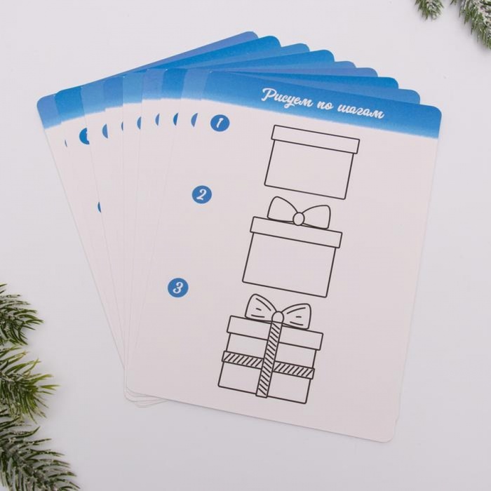 Вас ждут двухсторонние карточки с заданиями. В одних карточках нужно дорисовать недостающие элементы; в других — пошагово нарисовать какую-либо картинку и раскрасить её; а в третьих — создать картинку по точкам. Используйте для этого цветные маркеры!
