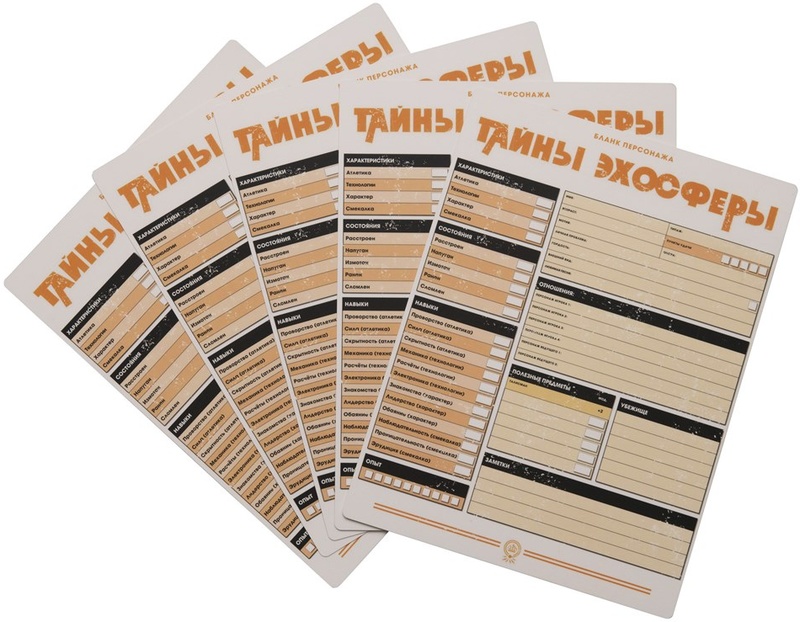 Настольная ролевая игра Тайны эхосферы. Набор бланков для игры