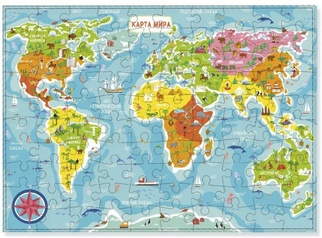 К примеру, в собранном виде пазл «Карта мира» представляет собой самую настоящую географическую карту Земли с ее материками и океанами. Чтобы ее собрать, ребенку придется постараться, ведь каждая деталь должна стоять на своем месте. Только тогда взору терпеливого игрока постепенно станут открываться моря и континенты.